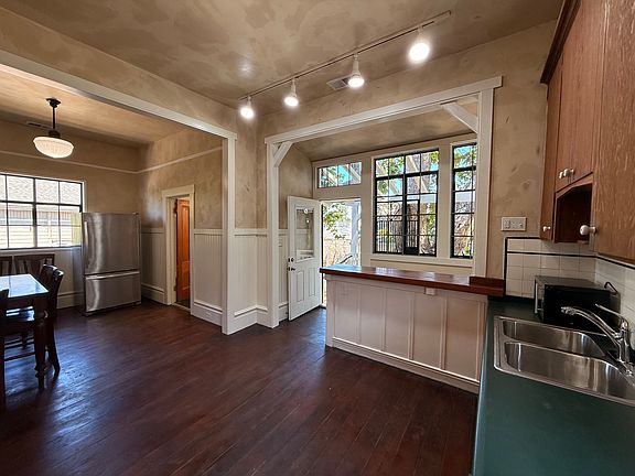 Spacious 7 room 3BD/1BA Home on the corner of 12th Street with rare secured off street 3-Car Parking in West Oakland Welcome to 1450 12th St a beautifully upgraded 3-bedroom, 1-bathroom home located in the vibrant and transit-friendly West Oakland the Manhattan of the Bay. Step inside to stunning dark hardwood floors throughout, a bright and spacious layout, high ceilings, and an updated kitchen featuring stainless steel appliances, including a gas range, microwave, dishwasher, and fridge. Handmade tile, Wooden counter bar & barstool seating, and create the perfect blend of style and function. The newly restored bathroom, dedicated laundry room, provide both comfort and flexibility ideal for, creative space, or future possibilities. Shower over tub with plenty a room for your bathroom toiletries. Enjoy the outdoors in your expansive yard (fenced), and elevated outside deck perfect for entertaining, gardening, or relaxing under the sun. A rare 3-car gated parking lot offers ample off-street parking hard to find in this area. Located just minutes from BART, Downtown Oakland, Berkeley, Emeryville, and the Bay Bridge, this home delivers unbeatable access to the best of the Bay.