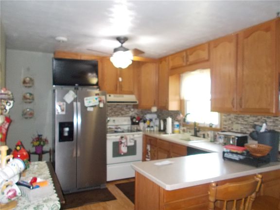 This cute ranch home offers three bedrooms, a bath, dining area, kitchen and an attached garage. The home has a full unfinished basement, which could be made into additional living space. The home has a rear deck and an additional lot to the south making the property over 1 acre that is close to town, but yet far enough in the country. The property has two storage sheds for all your toys. The listing includes also 018#.