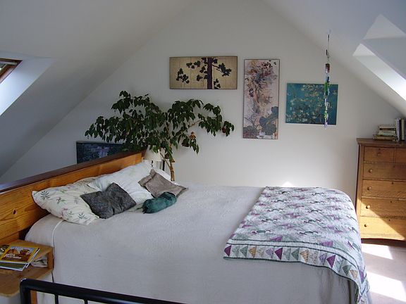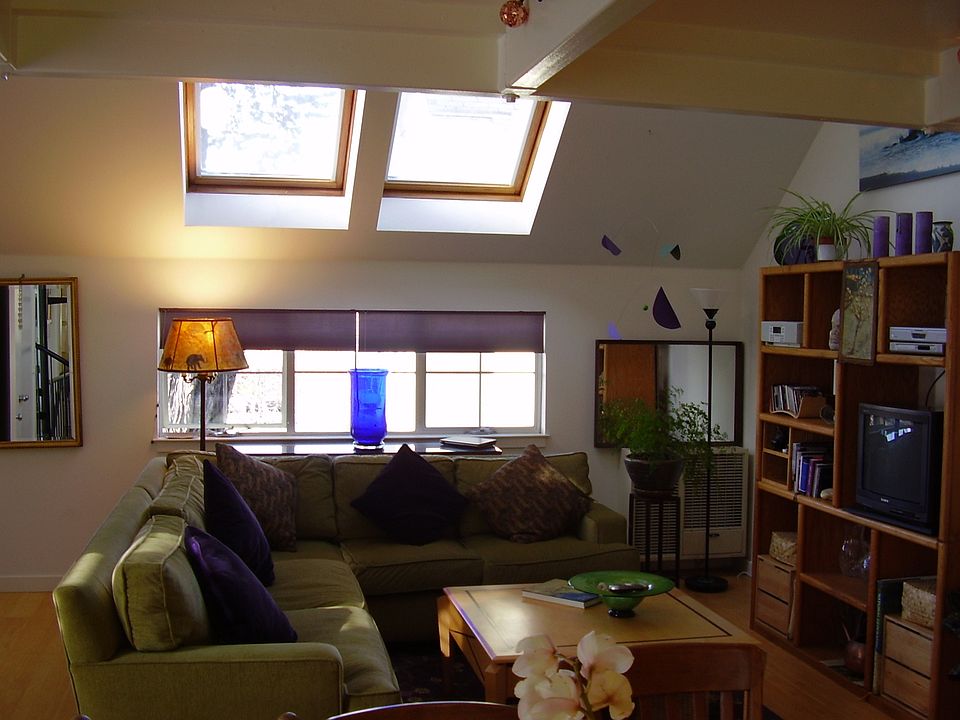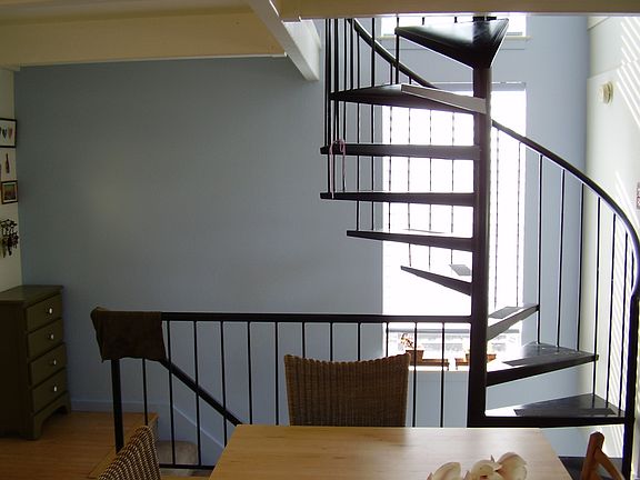 A beautiful light filled space. 1400 Sq ft total. Three stories, 600 sq ft work area with 18 foot ceilings, sliding doors that open unto a garden and a seperate entrance. Good sound insulation between units. Eight sky lights, updated kitchen, black out window and sky light coverings. Friendly community. SHOWING UNIT - 1/31 2-4 or call to schedule Small well managed dogs considered Tenant pays water and electric