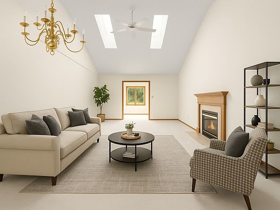 Welcome to 1450 Adrienne Circle, a beautifully designed ranch townhome offering over 2,000 square feet of single-level living. This thoughtfully crafted residence features soaring 12-foot vaulted ceilings, an inviting gas log fireplace, and a bright sunroom lined with Pella windows that flood the home with natural light. The open floor plan seamlessly connects the kitchen, dining, and living areas, creating an ideal space for both everyday living and entertaining. The primary suite provides comfort and privacy with its well-appointed bath, while a second bedroom and full bathroom offer versatility for guests, a home office, or hobbies. Additional highlights include a convenient first-floor laundry, an attached two-car garage, and a full basement roughed for plumbing, ready for your finishing touches.