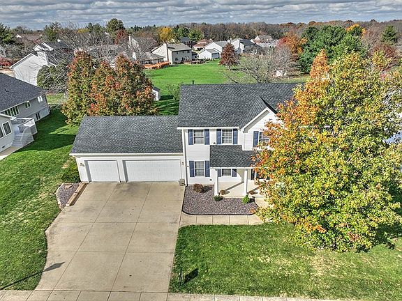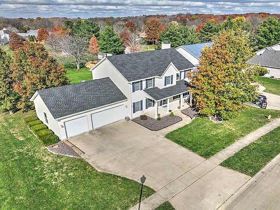 Traditional 2 Story in Mt. Zion's Ashland Estates with inviting front porch plus a back deck over looking the spacious back yard with patio with fountain and custom outdoor fireplace/grill and garden shed. Sidewalks allow for strolls without leaving the neighborhood! The kitchen has granite counter tops and a breakfast area that opens to the family room with gas fireplace boasting stone accents. There is also a formal dining room and a dedicated main floor office! The laundry room is conveniently located on the upper level with a large master suite and 2 other spacious bedrooms. The basement offers a 3rd full bath, a rec room with a built in entertainment area and another room that could be a guest room (no egress currently but there is an egress window in the rec-room). New roof 2024, New siding 2023/2024. New gutters 2023. HVAC 2022. Sump pump with hydro back up 2022. Electrical updated with GFI's on all circuits.