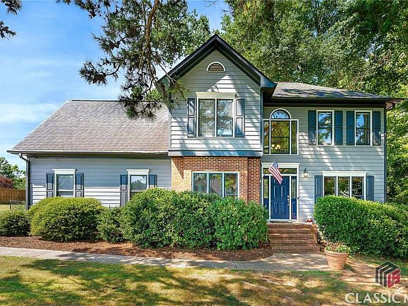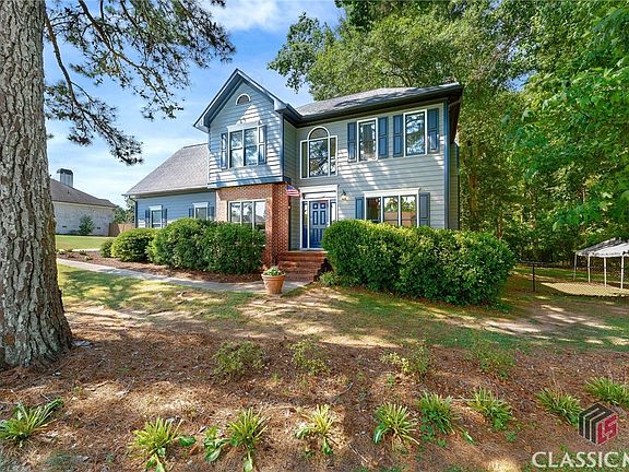 This spacious home is bright and welcoming, with gorgeous natural light and hardwood floors throughout the main living spaces, as well as fantastically located on an oversized fenced lot in the North Oconee school district! FEATURES: *spacious rooms with tall windows and an abundance of natural light *large kitchen with stainless steel appliances and great cabinet and counter space open to a breakfast area and family room *separate dining room *home office or flex space, which could also make a great workout room or playroom *spacious owner's suite with trey ceilings, walk-in closet, and ensuite featuring separate vanities, shower, and soaking tub *new back deck overlooking well-manicured landscaping and huge fenced lot featuring a private wooded area with hiking trails *convenient location provides quick access to Hwy 78 and Athens LAYOUT: *1st Floor: Foyer, Dining Room, Office/Flex Space, Open Kitchen/Breakfast Area/Family Room, Half Bath, Mud/Laundry Room *2nd Floor: Owner's Suite, Bedrooms 2-3, Bedroom 4/Bonus Room