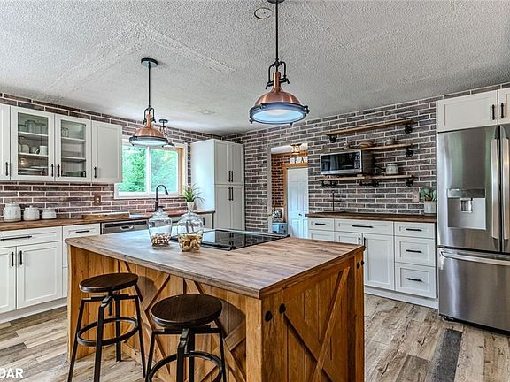 FULLY REMODELLED MUSKOKA RETREAT ON 1.76 PRIVATE FORESTED ACRES WITH SOARING CATHEDRAL CEILINGS, A CUSTOM MUSKOKA SUNROOM, & A 30 X 30 FT SHOP WITH DOUBLE BAY DOORS! Tucked away on 1.76 acres of private, forested land, this extraordinary Muskoka retreat combines natural beauty with stunning upgrades and year-round comfort. Located just down the road from McLean Bay and Sopher’s Landing Marina, and only 10 minutes to downtown Gravenhurst, you are surrounded by lakes, trails, golf, and natural splendour, yet close to every convenience. Designed for outdoor enjoyment, the home boasts a wrap-around deck, a luxurious newer hot tub with a pergola, a charming 3-season bunky for guests or creative use, and a newly built 30x30 ft shop with double bay doors, ideal for car enthusiasts, hobbyists, or seasonal storage. An oversized driveway provides ample space for vehicles, RVs, boats, and other recreational toys. Inside, the striking open-concept design flows seamlessly through the kitchen, dining and living areas beneath soaring cathedral ceilings, while oversized windows frame serene forest views and flood the home with natural light. The inviting living room features a cozy stone-detailed fireplace, rustic exposed beams, and sliding barn doors leading to a primary suite with a walk-in closet and a spa-like 3-piece ensuite with a deep soaker tub. A custom Muskoka sunroom extends from the primary suite for quiet mornings or evening relaxation. Two additional bedrooms and a 4-piece bath complete the main level, while the walkout basement with a dry bar and electric fireplace provides versatile in-law suite potential or a stylish entertainment space. Completely remodelled with a thoughtfully designed addition, this home is finished with artisanal details, including a hand-milled white ash staircase. A true Muskoka sanctuary, this property offers the privacy, craftsmanship, and lifestyle you’ve been dreaming of - ready to be enjoyed in every season!