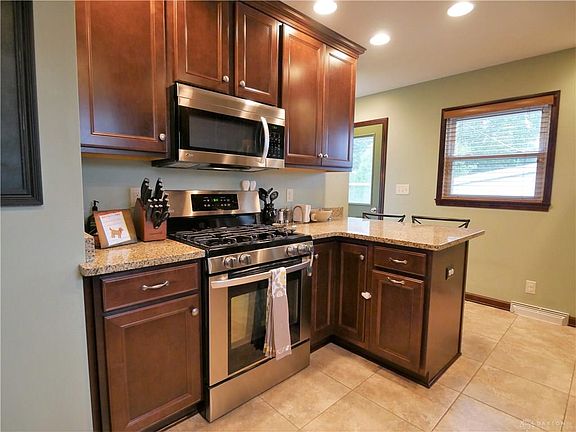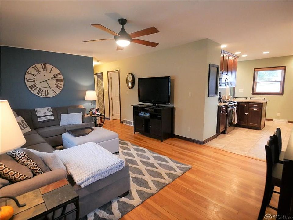 Simply Stunning brick ranch in Dayton is sure to charm you with it's authentic wood floors, luxurious updates, and basement made for entertaining! An open front living room greets you and flows right into a beautiful kitchen with granite counters, stainless appliances, wood cabinets and bar top stool seating. Refinished wood floors complement multiple areas of the home. Basement features partially carpeted surface with a fantastic pad underneath and bar area w/ canned lighting. Updated windows, roof, gutters, soffits, AC, and furnace. Call today before it's gone!