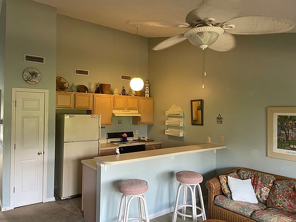 1/1 unfurnished third floor condo in Island Green. Open kitchen/living room and vaulted ceilings. Private balcony in the back, washer and dryer, and community pool. Quiet location yet still just a short drive to the beach, shopping, and more. Rent includes water/trash, cable, and internet service. Sorry, no pets.