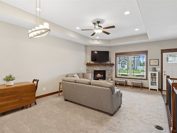 Move in ready 3 bedroom, 2 full bath, walkout ranch-style lock and leave paired home in the beautiful Cardinal Ridge neighborhood. You'll greet your guests on a covered front porch with plenty of room for outdoor furniture. Spacious living area is filled with upgrades, including zero step entry, 9' ceilings, and corner gas fireplace with blower. The open dining area and kitchen flow together to create a fantastic area for entertaining. The kitchen boasts white cabinetry, with full extension soft close drawers, cambria quartz countertops, blanco sink, a perfectly matched tile backsplash, with all stainless steel appliances included. Enjoy your morning coffee at the breakfast bar, or walk through the kitchen through the sliding doors that lead to an elevated composite deck perfect for grilling, and entertaining. The back deck view features a wooded area for added privacy. The oversized primary bedroom is on the main level, complete with a walk-in closet, en-suite bathroom with dual sinks, and step-in shower. There are 2 additional bedrooms on the main level and another full bath. Laundry is on the main level, and is the zero entry step exit to the attached 3-car garage. The walkout basement is stubbed in ready for you to build out for additional living space. The sliding doors lead out to a concrete patio below the deck. Schedule your showing today!
