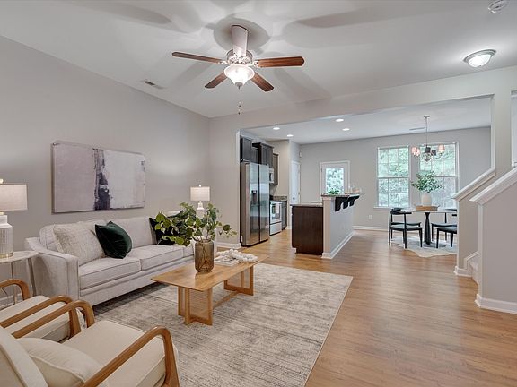 Beautiful 3 bedroom 2.5 bath townhome backing to wooded area, on the culdesac in perfect location! Tucked away but yet close to highways, shopping, dining and more! Gleaming wood floors on main level with NEW PAINT and NEW CARPET! Washer, dryer, refrigerator CONVEYS! Ample closet space in all the bedrooms! 1 car garage, patio out back with privacy! Granite countertops, breakfast bar, stainless appliances!