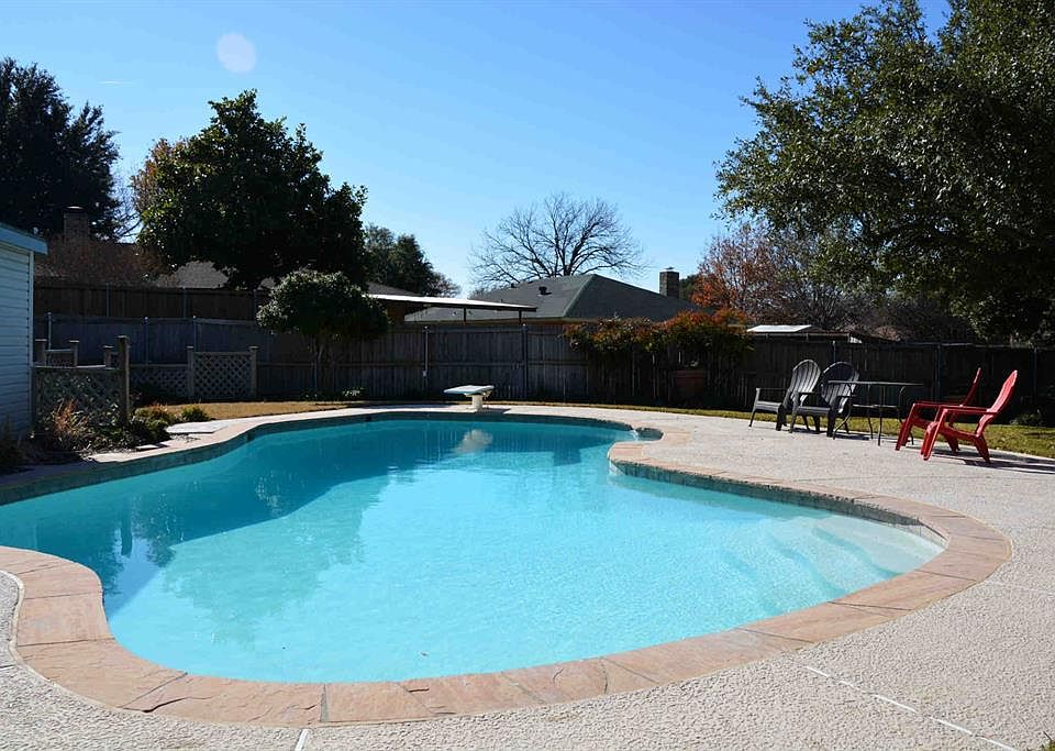 Great 4-bedroom ranch with large back yard and private in-ground swimming pool. Updated kitchen has natural wood cabinets, granite counters & recent appliances with gas cooking and a convection oven. Breakfast area has a built-in hutch. Updated flooring surfaces include wood-look vinyl, ceramic tile and carpeting. Other major updates include windows, HVAC, new irrigation system, new pool plaster, and recent roof. Enclosed patio sun room has heat & A-C and plenty of windows to enjoy your back yard oasis.
