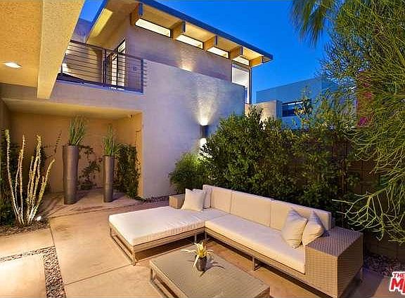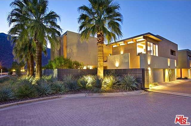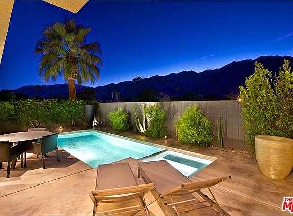This unique, exquisite and phenomenal 2BD/2.5BA modern townhome is the ultimate Palm Springs living with its incredible indoor/outdoor, end unit, majestic South & West Mtn views from everywhere: living room, dining area, front, side & back patios, master bedrooms, balconies, pool area. 2 separate master bedrooms (one w/ its own separate entrance), soaring high ceilings, abundant light coming from skylights and clerestory windows, open floor plan, fireplace, sliding doors that disappear into the wall opening to your own private pool/spa, a 2nd private relaxing front patio, an upper deck, side yard w/ artificial turf, Mtn views that goes as far as Big Bear Mtn, classy and stylish d~cor, comfortable kitchen, pantry, lots of walls for art, 2 car garage attached. Land you own (FEE), low HOA ($377) includes new roof, water, earthquake ins. Centrally located, minutes from downtown, shopping, restaurants, movie theaters, design center, gym, airport, casino, tennis, golf, hiking/biking trails.