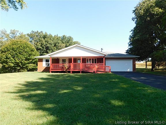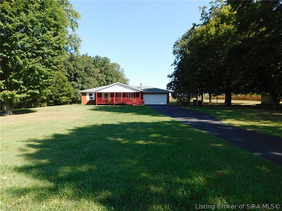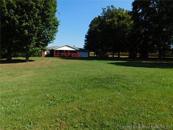 MOVE IN READY SECLUDED COUNTRY HOME with 7 Acres. Newly remodeled 3 BR, 2 Ba BRICK home comes with a full unfinished BASEMENT and a freshly painted 300 SQ FT covered front deck with ramp. PARK LIKE SETTING with lots of mature shade trees. LOTS OF UPDATES: New flooring, new electric fireplace, new lighting, freshly painted, newly painted deck, some updated electric. Spacious eat in kitchen with lots of cabinets and new dishwasher and range is included. Persimmon tree, 4 Pecan trees, Apple tree, Hazelnut bush are already there for your enjoyment.Lots of road frontage and some woods as well. QUIET LOCTION ON A DEAD END ROAD that is surrounded by farm land. Great location just 20 min. from New Albany, Salem, or Corydon and right off of Hwy 135. Home has city water but also has a WELL hooked up to outside water spicket. 18 X 20 CARSHED INCLUDED.. THIS ONE WILL NOT LAST LONG!!