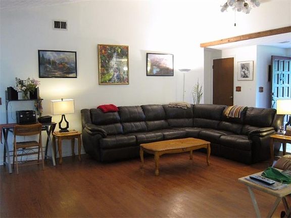 Beautiful ranch home on cul de sac street in quiet, well-kept neighborhood districted for Nicholson, McCleskey and Kell (top rated schools). The home offers a level lot, fenced backyard, beautiful low maintenance landscaping with Zoysia front lawn and patio and outbuilding in back. Enjoy the wood and tile floors, dramatic fireplace, large garage, friendly neighbors and retreat from the city in comfort. All furniture and appliances shown in the pictures come with the house including a giant corner dresser/hutch that comes with the master bedroom (not shown). There is a laundry room with electrical connections for your full sized washer and dryer. Applicants must provide contact information for landlords for the previous 3 years, proof of combined income of at least 3 times the monthly rent, and credit scores of 650 or above for signatories to the lease contract. A current credit check via mysmartmove.com (by owner's invitation email) is the typical scoring mechanism. All utilities, trash pickup, yard care, pest control are the responsibility of tenant. Additional deposit required if pets included. Owner manages maintenance and repairs on appliances and home. All utilities, trash pickup, yard care, pest control are the responsibility of tenant. Additional deposit required if pets included. Owner manages maintenance and repairs on appliances and home.