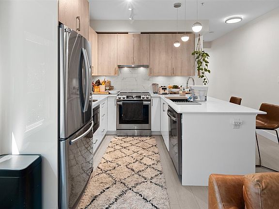 Welcome to this gorgeous and bright 2021 condo at The Glenn. This 2 bed, 2 bath ground floor corner unit has an open concept floor plan, creating an ideal space for both entertaining and everyday use. One of the two large patios backs onto the forested Portage Park, which provides a seamless transition from the comforts of home to the serenity of the outdoors. The primary bedroom features a walk through closet and an ensuite with heated floors (NuHeat) and a double vanity. Other features include in-suite laundry, two parking spots, stainless steel appliances, roller shades, 9’ ceilings, and a separate large storage locker. Building amenities include a fenced in pet area, wash stations, bike and kayak storage, and a rooftop patio. Minutes from the ocean and within walking distance from restaurants, groceries, trails, parks, and shopping.