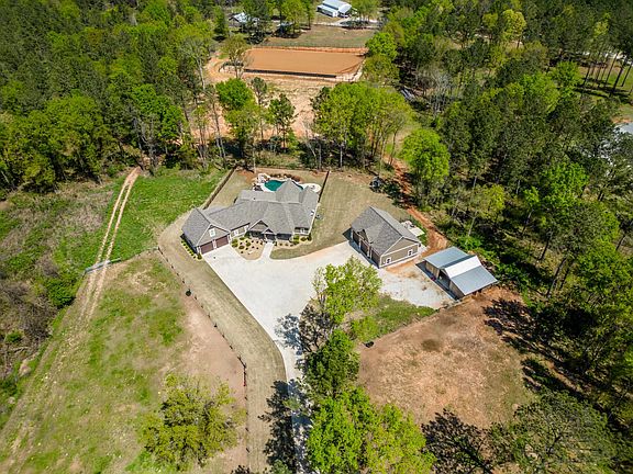 Whether you're looking for an equestrian lover's dream or just an escape to country living, THIS IS IT! Fenced 6+/- acres, with a detached 3 car shop, and two stall barn with a wash rack. The gunite, salt water pool with pebble finish and a grotto waterfall is where you'll want to spend all of your summer afternoons. Tucked on the backside of the property is a 150x200 roping arena. This spacious home features 5 bedrooms (or 4 and a bonus room) and 4.5 bathrooms, a mud room off of the garage, large laundry room, vaulted ceilings, custom beams, built ins, wood burning fireplace, quartz countertops, covered back patio, insulated garage doors. Just 7 minutes to historic downtown Madison, 25 minutes to Lake Oconee, and 50 minutes to downtown Atlanta. The 3 car shop is fully insulated and has power and water.