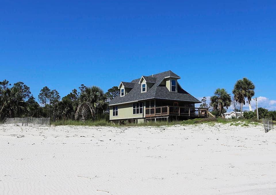 Charming beachfront home on secluded Indian Pass! This beautifully designed home harmonizes with the natural surroundings, showcasing classic coastal architecture and accents that add character to a home. The open concept living/dining/kitchen areas are filled with natural light thanks to the large doors and windows that frame the breathtaking views of the Gulf. Kitchen is a chef's dream with stainless appliances, ample storage, breakfast bar and a functional layout. The spacious master suite is on the main level with a modern master bath with tile walk in shower. Two charming bedrooms upstairs enjoy vaulted ceilings and share a hall bath; the beachfront room has dormered windows with Gulf views and a twin bedroom also has a dormer view of the Gulf. The highlight of this property is the house-wide screened porch to enjoy those fresh coastal breezes. Short drive to the Indian Pass boat launch, world famous Indian Pass Raw Bar and just 15 minutes to charming Apalachicola or Port St. Joe. Also a popular rental home making this an income producer that you can enjoy with your own family!