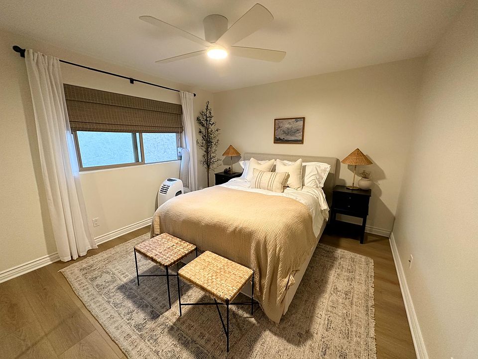 FULLY FURNISHED & NEWLY RENOVATED WITH BRAND NEW FURNITURE, INSIDE WASHER/DRYER and NEW 58" SMART TV! This upstairs unit has been upgraded with new flooring, paint, lighting, window coverings, and furniture! Complex is gated with pool and fitness room. Unit comes with assigned off-street parking space behind building. This complex is minutes to the beach and freeway access, and located in a safe, residential neighborhood of Imperial Beach. Walking distance to NOLF and 8 miles to NAB Coronado! Fully furnished. 30 day minimum. Long term lease accepted, too. Water is included! Renter will only be responsible for electricity and WiFi. One assigned parking space behind building + street parking. Condo overlooks pool. Sorry, no smokers, and no pets.