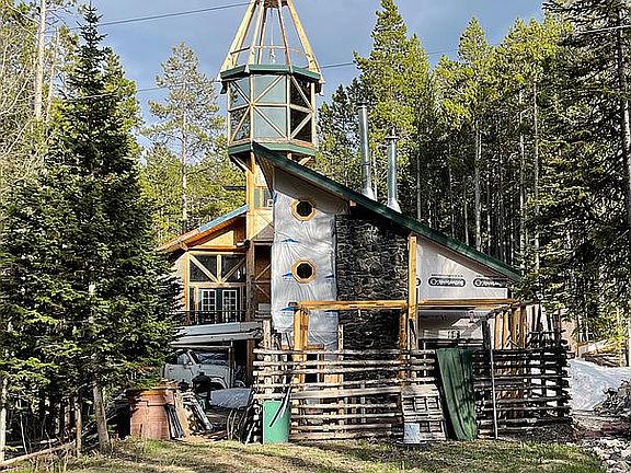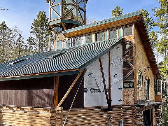 Unique handcrafted Lodge. Log work was done onsite with lodge pole pine from the surrounding acreage. Also have a sawmill on-site. The tower designed and built from these materials allows for unobstructed viewing of the night sky and surrounding area.