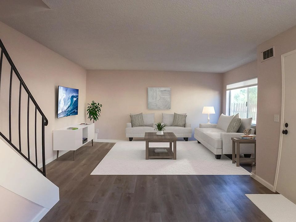 Completely upgraded townhouse for your buyer. Downstairs all new luxury vinyl flooring. Full kitchen remodel with new appliances, cabinets, countertops and stainless steel sink. Direct access to private patio and to outside laundry. Half bath upgraded as well. Three bedrooms upstairs carpeted along with stairs. Updated master bathroom. New window coverings, raised panel doors, hardware. Storage in carport and one extra private parking. Unit located to rear of the complex. Complex not currently VA approved. Will entertain reasonable offers.