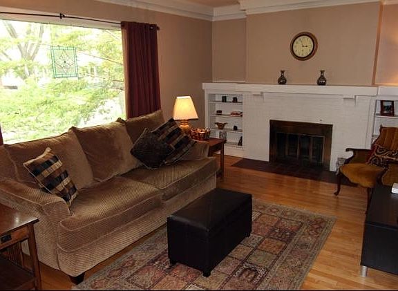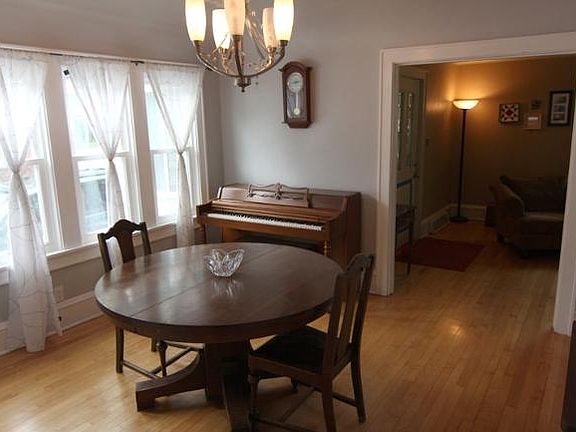Sunny Washington Heights 4+ Bedroom, 1 bath Bungalow with air conditioning. Hardwoods, new carpet, built in china cabinet and natural fireplace. Eat in kitchen has pass thru and dishwasher. Upper level has 2 bedrooms, bonus room and space for full bath. Basement has a great space for playroom or man cave. Garagae is large enough for minivan or SUV, with new electrical and work area. Also includes large storage loft.