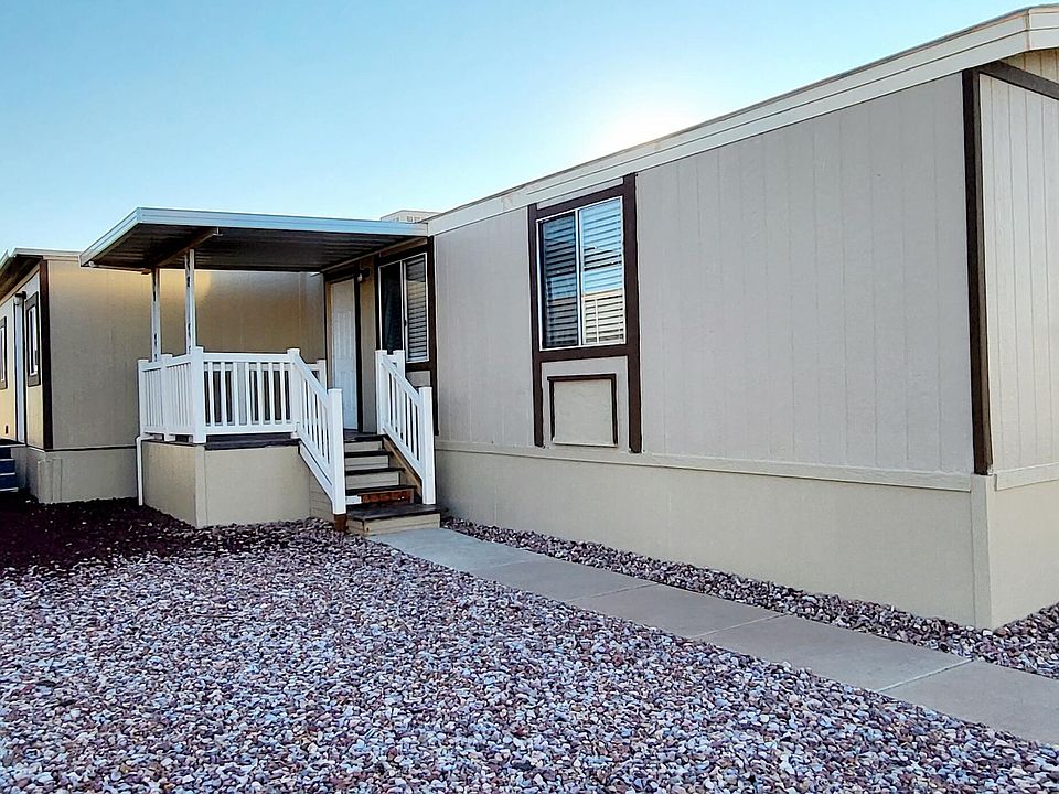 Completely updated home with an open floor plan and plenty of room for vehicles. Home features new floors, updated paint, appliances, new kitchen cabinets, granite counter tops, skirting and new a/c. Master suite includes a master bath with tile floor and shower. Home is not in a 55+ Community. Lot is not included and is leased by the HOA for $490/month plus $25/month for water. Great location with grocery stores, schools & parks nearby. Buyers must pass a background check and credit check to be approved by the HOA. Application attached in the documents section. Buyer to verify all information, deemed reliable, however buyer to verify all info including square footage, utilities & HOA information if applicable