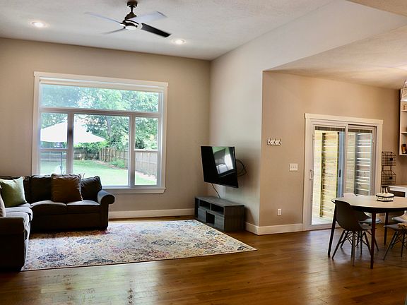 This perfect craftsman style home is only 3 years old and is walking distance to Drury University! You will fall in love with the high ceilings, natural light flowing inside, wood floors in the main living spaces, and open floor plan. The spacious kitchen includes stainless appliances, granite counter tops, one of the biggest islands I have personally seen, and a pantry. The primary bedroom is split from the other 2 bedrooms and includes a full bath with walk-in shower and dual sinks as well as a walk-in shower. The back yard is an absolute dream! It is a deep lot, privacy fenced with mature trees and landscaping. There is a covered patio as well as a second patio for entertaining. The storage shed stays with the home and there is already a fort built for kids of all ages. This great home is located on a gorgeous tree lined street perfect for evening walks!