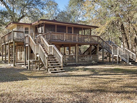 Experience riverside tranquility in this stunning 3-bedroom, 2-bath house nestled on approx. .8 acres along the Santa Fe River in Branford, Gilchrist County, Florida. This charming home has a dock extending over the beautiful Santa Fe River, offering breathtaking views. Enjoy the perfect blend of nature and comfort with a spacious screened-in porch, making this property an idyllic retreat for those seeking serenity and connection to Florida's beautiful outdoors. With the set up of furniture and TV below the house there is plenty of room to entertain friends & family. Don't miss out on your chance to own this peaceful river home!