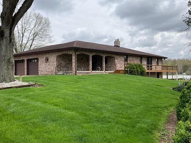 Located on Beam's Lake is this well built all brick ranch home featuring 4 bedrooms, 2 full baths, quality oak cabinet filled kitchen, dining room/living room combination with oak built in cabinets, lower level has 1 bedroom and huge walk-out Family room to patio to enjoy the lake views and enjoy those evenings by relaxing on the deck off of the living room. Attached oversized 2 car garage with work area and extra workshop area in basement. There is also an 8x12 yard barn, small dock/ramp for your boat, nicely landscaped, whole house generator, hardwood floors in the bedrooms, new kitchen floor in kitchen and entryway, new AC unit in 2021, and much more!! All of this for just $314,900.00!