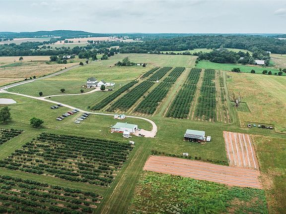A true Farmington icon, Liberty Blueberry Farms has been an essential family summer destination for 30+ years. This well established business is one of the largest blueberry farms in Missouri. Top of the line facilities keep this farm running smoothly all through picking season, including a large shop equipped with everything you'll need to hit the ground running, as well as an in ground irrigation system that runs throughout all of the berry patches, all run by eco friendly solar panels. The true eyecatcher driving up to the property is the gorgeous farmhouse that stands tall above the farm. This 3700+ sq ft residence boasts an old charm rarely found in newer homes, including beautiful hardwood flooring, Tiffany chandeliers, crown molding, and french doors. The kitchen features granite countertops, a commercial fridge, built in espresso maker, double wall ovens and more. In the summertime be sure to take a dip in the luxurious in-ground pool. This is a once in a lifetime opportunity.