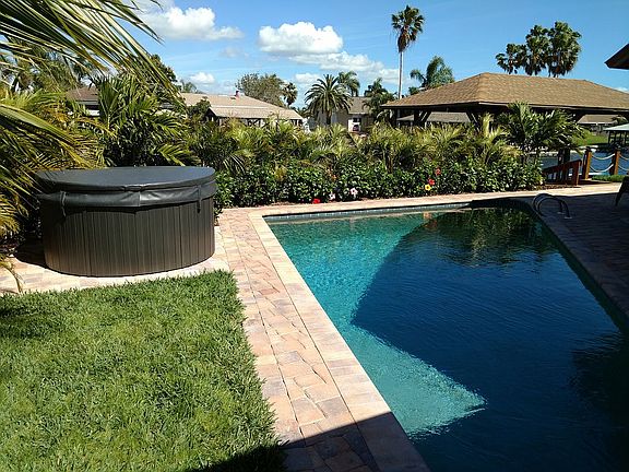 Welcome to Paradise! This beautiful CANAL POOL home features 3 bed/2 baths, + large den/living room that could easily be a 4th bedroom and 2-car garage. Newer roof, new hot water heater, & new AC! Large open kitchen w/all new appliances. Huge master suite w/2 walk-in closets, double sinks, tiled shower & bath tub. Cozy wood-burning fireplace. Enjoy the cool breeze from your huge screened patio that wraps around the home & overlooks the water. Relax & watch the dolphins & manatees play! Access the patio & pool from sliders off the master bedroom, family room, or den/living room. Large pool deck leads to the covered boat house w/lift and ramp. Lush landscaping w/sprinkler system. Alarm system. Indoor laundry room. A+ schools, 10 min to beach, 45 min. to Orlando. No HOA!