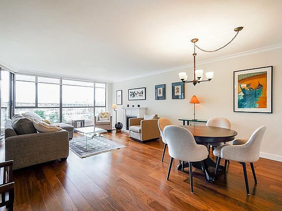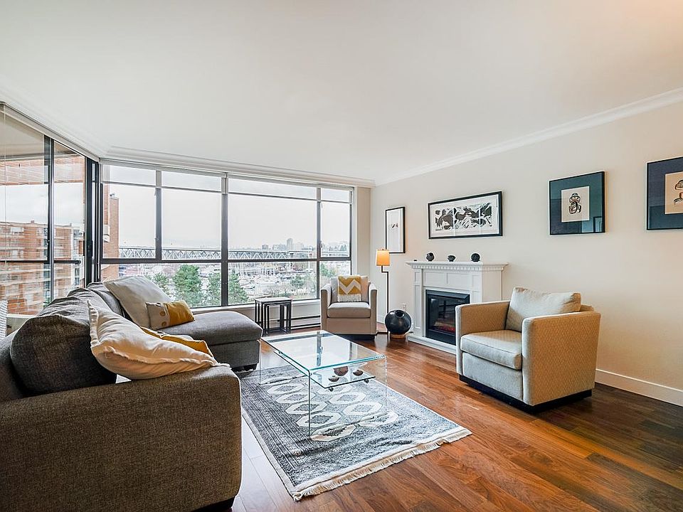 Welcome to Harbour Cove! Stunning 2 bedroom home with over 1300 SF of sophisticated interior living space and unobstructed water, marina & garden views. Spectacular open concept plan is detailed with new engineered hardwood floors, electric fireplace, chef's kitchen with granite counters & SS appliances, quartz & granite in oversized bath & rare open balcony overlooking lush, manicured gardens & marina at Fisherman's Wharf. Guest bedroom features Murphy bed with plenty of storage. Concrete building with concierge, squash courts, indoor pool, sauna, well-equipped workshop & gym. Rentals allowed. No pets. This waterfront resort property is located in the pulse of the West Side just steps from the seawall, a block from Granville Island & close to all the best amenities Vancouver has to offer.