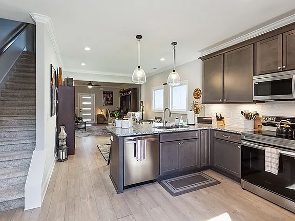 Like new beautiful END unit in Hidden Rivers built in 2023. Appliances include washer and dryer, stove, dishwasher, refrigerator, water softener, and 2 gig internet. One of the upstairs bedrooms includes a walk out balcony facing trees and an established neighborhood. Home is a 3 minute walk to the Cason Lane trailhead on the greenway.