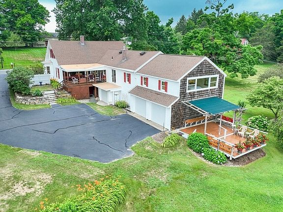STUNNING views await at this impeccably maintained South Amherst home! As you enter, a warm and open kitchen greets you. Sip morning coffee in the cozy kitchen alcove and finish your day by the propane stove - perfect for those chilly New England nights. A large walk-in pantry also boasts convenient main floor laundry. A proper dining room, light-flooded living room and 2 bedrooms round out the West wing of the home with 2 additional rooms upstairs in the attic just waiting to be brought back to life! Wake up to gorgeous sunrises over the mountains as you gaze out the picture window of the primary suite addition. Tinker in the basement workshop or the huge 2 story, 40x60 barn. House has 3 garage spaces & 2 addt'l in barn! The manicured grounds set on 2.43 acres with deck & stone terrace are perfect for entertaining. Downtown Amherst & nature trails nearby! The classic charm of yesteryear combined with comforts of today, this is the one! OPEN HOUSE THURSDAY 4:30PM-6PM.