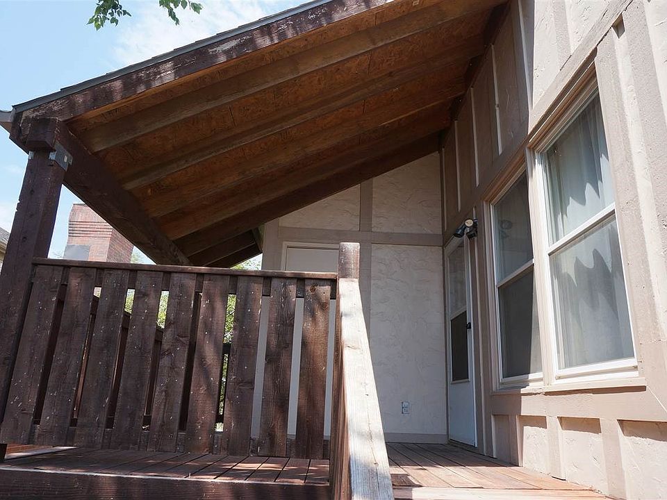 Darling condo with 2 masters! Each has a walk in closet and bathroom and on separate floors. This unit is an upper unit with covered wood deck and storage closet. Inside is the kitchen and eating space that are open to the large living room with wood burning fireplace. Main floor laundry off master. One car garage as well as a dedicated parking stall. Walking distance to nearby Harrison Park, grocery store or nearby restaurants. Community pool is great for cooling down in this summer heat!!