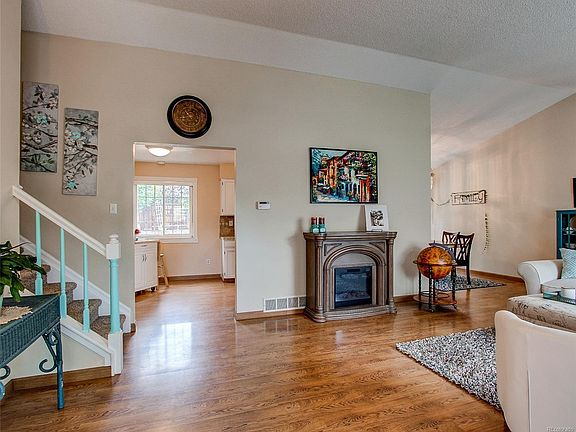 Welcome to this spacious tri-level, 2 car garage home in Aurora Highlands! This is one of the largest models in the neighborhood and features vaulted ceilings, an open floor plan, 4 bedrooms + bonus sunroom, a large backyard with a storage shed and much more! This charming home welcomes you with a light flooded main floor living room, gleaming hardwood floors throughout, formal dining room that leads to the kitchen with brand new stainless steel appliances, and eat-in-kitchen. The inviting family room has a wood burning fireplace and just steps to the huge sunroom that is perfect for entertaining or just relaxing. The master bedroom features an en-suite bathroom and a large walk-in closet. Across the hall are two additional bedrooms and a full bathroom. The fully finished basement features a 4th bedroom (non-confirming), a rec room perfect for a home theater, gym, or playroom, and tons of storage! Short 5 minute walk to the nearby park, and near Buckley AFB and fast access to I225.