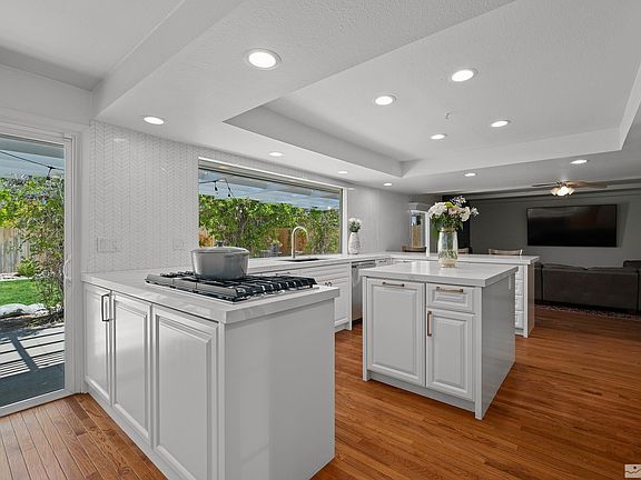 Open House 5/19 4pm-6pm & 5/20 10am-1pm. Tucked into the mature trees of the highly sought out Old-Southwest Reno, welcome to your new charming & modernized home. Leave a lasting impression on your guests after entertaining in your beautiful kitchen, showcasing custom cabinetry and a stunning quartz countertop island. With two master bedrooms, this home offers ample and versatile space., The combined living and dining space provides an open and spacious area for entertaining and relaxation. Additionally, there is a separate family room conveniently located off the kitchen, creating a cozy and inviting space for gatherings.