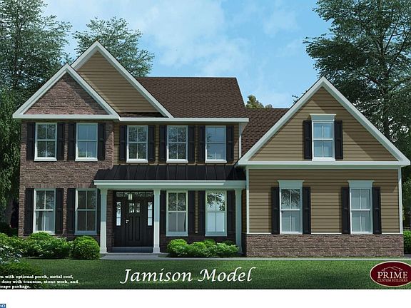 Move right into this stunning 4 bedroom, 2 full and one half bathroom Jamison model new construction home built by Prime Custom Builders located on a gorgeous 0.92 acre lot in Central Bucks School District. A stunning two story foyer with hardwood floors greets you as you enter and is flanked by a formal living room to the left and formal dining room with hardwood floors and crown molding to the right. The hardwood floors flow into the adjoining hallway which leads past a charming carpeted study and staircase to the second floor before opening into a spacious family room with neutral carpeting, vaulted ceiling and a stone gas fireplace on the left and gourmet eat-in kitchen that boasts a granite countertops, center island, pantry, recessed lighting, hardwood floors and stainless steel General Electric appliances, including gas range, built-in dishwasher and built in microwave. A large mudroom with closet, powder room and laundry room complete the first floor. The second floor is hope to an expansive owner's suite complete with walk-in closet, sitting room and a luxurious private bath with stall shower and upgraded tile, a hall bath with dual vanity and three additional nicely sized bedrooms, including one with its own walk in closet. There is also a niche outside of the owner's suite that would make an ideal space for a computer or reading area. Additional amenities include a 2 car attached garage, high efficiency gas heat and public water and sewer. Photos are of a similar property.