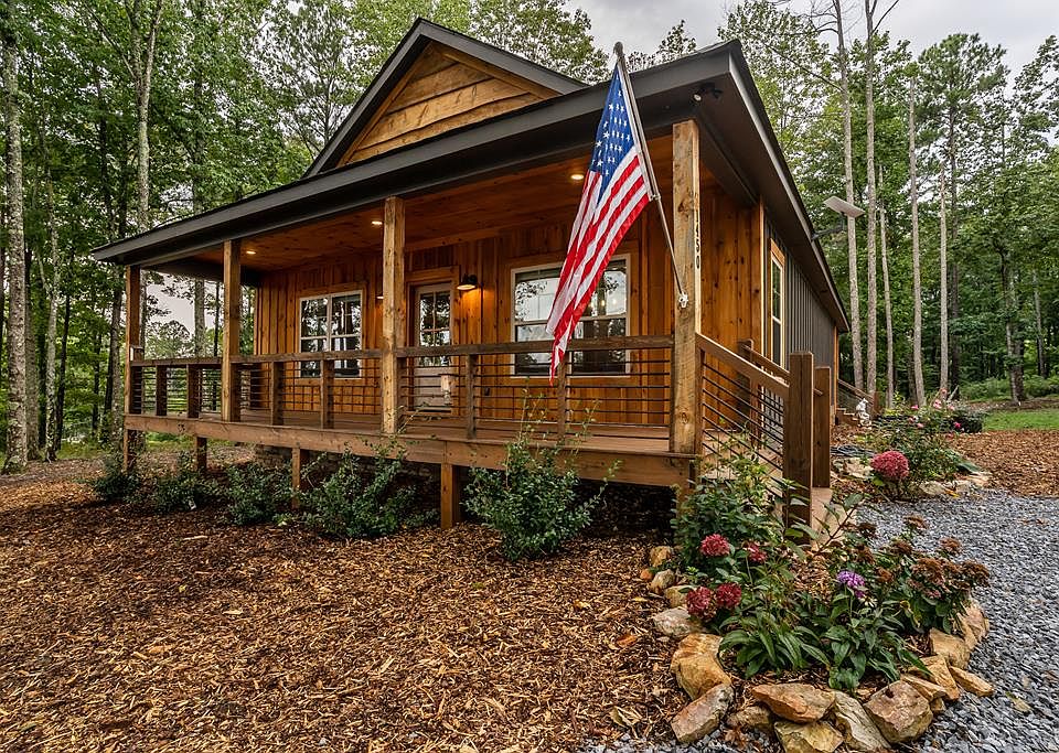 This rustic mountain-view home in The Vineyard at Yukon in Talking Rock offers a rare blend of character, comfort, and location, set just behind the renowned Chateau Meichtry Vineyard and within five miles of several other celebrated wineries. Situated on a wooded corner lot with mountain frontage and a spacious front yard, the property features large covered front and rear porches with charming Blue Buggy Pine tongue-and-groove ceilings, perfect for relaxing or entertaining. Inside, you'll find high ceilings, beautifully crafted circle-sawn rustic cabinets in the kitchen and bathrooms, tile flooring in the bath, and a spacious owner's suite complete with a double vanity and walk-in shower. The home is equipped with stainless steel appliances, energy-efficient systems including double-pane insulated windows, and a smart thermostat. A gas fireplace, fueled by a buried 250-gallon propane tank, adds warmth and ambiance to the living space and can heat the home. A detached workshop or storage shed, installed in 2025, includes a mini-split heat pump with heating and cooling, backed by a five-year warranty on the structure and materials. The crawlspace houses the AC unit and water heater, both with long-term warranties. The home also features a private septic system. Outside, you'll appreciate the level driveway, HardiPlank siding, courtyard, garden space, and rear stairs. Streams and a cozy sitting area at the top of High Summit provide stunning, panoramic views — a perfect spot to unwind and take in the beauty of the surroundings. Located within a private, gated community with its own scenic pavilion at High Summit, this home offers access to walking trails, greenways, and the peace of mind that comes with a well-maintained HOA. Ideal for those who love the charm of rustic living with modern, energy-efficient upgrades in the heart of North Georgia wine country.