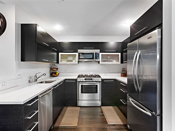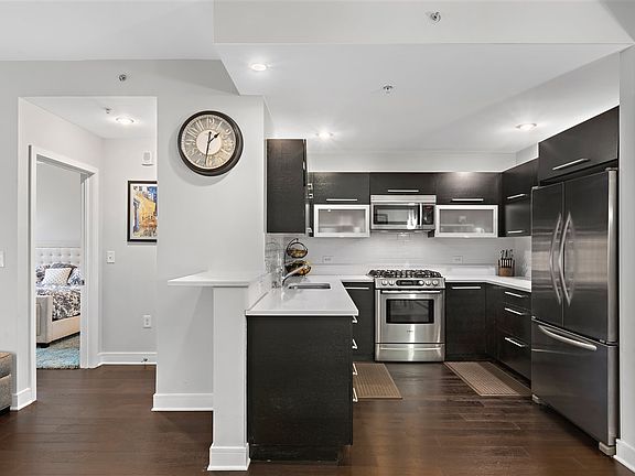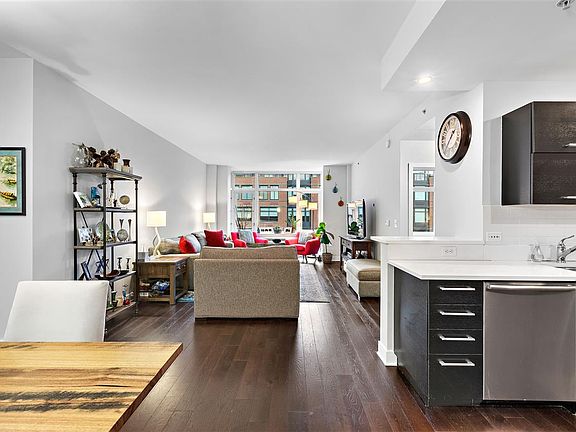 East facing stunning 2BR/2BA in the premier uptown luxury building, 1450 Washington St. Fantastic open floor plan with gleaming hardwood floors throughout, SS appliances, quartz counter tops, large custom pantry, subway tile back splash. Spacious master bedroom with custom his and hers closets, custom Hunter Douglas blackout shades in both bedrooms. Luxury complex offers 24 hr concierge, gym, children's play room, roof deck with fire pit and BBQ, swimming pool in 1400 Hudson building. Shuttle to/from PATH. Convenient walk to the Ferry. Close to all shops and restaurants.