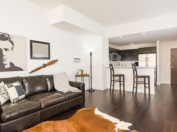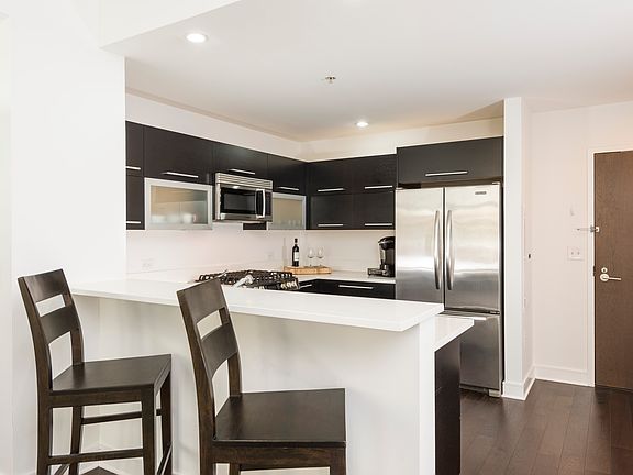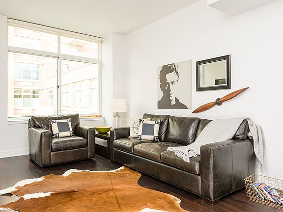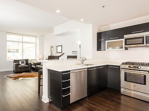 Spacious and bright nearly 800 sq ft one bedroom with terrace at 1450 Washington, a luxury full service building in uptown Hoboken. Modern, sleek design: the open floor plan features a generous living / dining room; chic kitchen with Bosch stainless steel appliances and white quartz countertops. Dark hardwood floors and large windows throughout. Marble bathroom with Kohler fixtures. Washer/dryer in the unit. Luxury building and community offers 24/7 concierge, new pool, 2 gyms, and a landscaped roof terrace with a fireplace and BBQ's. Shuttle to PATH. Conveniently located in dynamic uptown Hoboken: shopping, dining, waterfront, NYC ferry & bus just moments away.