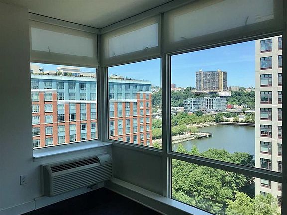 Stunning 860 Sq Ft .one bedroom in Uptown Luxury Toll Brothers Building. Unit features NY CITY VIEWS, 9 ft ceilings, gourmet kitchen, European custom cabinets, w/d, ss appliances, white caesar countertops and hw floors. Building amenities: 24 hr concierge, pool, gym, children's play room, landscaped rooftop terrace, outdoor BBQ area and fireplace. Commuter's dream! Ferry, buses to NYC located around the corner, private free shuttle to PATH. Parking Available. Pets allowed. Available Immediately