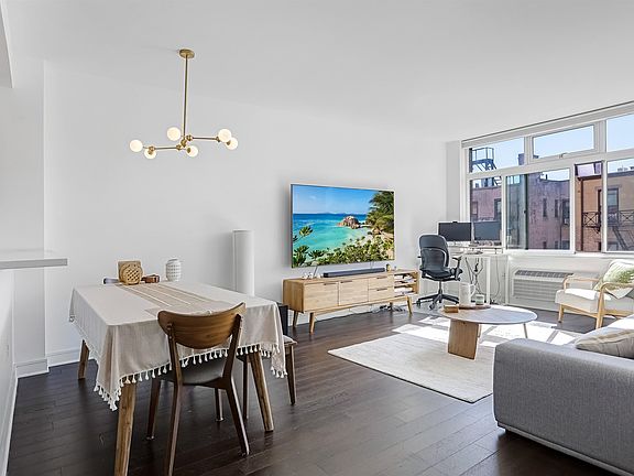 Sun-filled and spacious 1BR/1BA south-facing home with 763 sq. ft. featuring an open floor plan, hardwood floors, and a gourmet kitchen with Caesarstone countertops, custom cabinets, and stainless steel appliances. The residence offers a large living/dining area, generous bedroom with walk-in closet, and in-unit washer/dryer. Located in a luxury waterfront community with 24-hour concierge, fitness center, and rooftop deck with fire pit and BBQ grills, plus access to additional amenities including outdoor pool, yoga and exercise rooms, billiards lounge, and children's playroom in a next door building. Prime Uptown Hoboken location within walking distance to grocery stores, farmers' market, shops, restaurants, parks, and the ferry. Free shuttle service to the PATH provides an easy and convenient lifestyle.