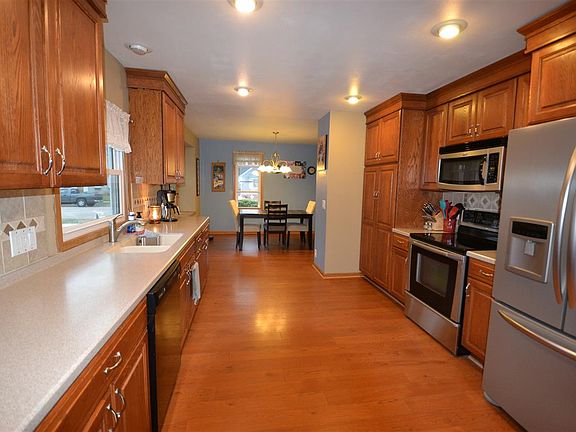 Large family home on a corner lot and is move in ready. 4 bedrooms and 2 full bathrooms, has a huge kitchen waiting to make that great family meal, finished rec room in basement with wet bar to relax in the evening, hardwood floors, backyard has playset and two-tier deck. New A/C in 2019. Close to community park. Seller is including a Home Warranty.