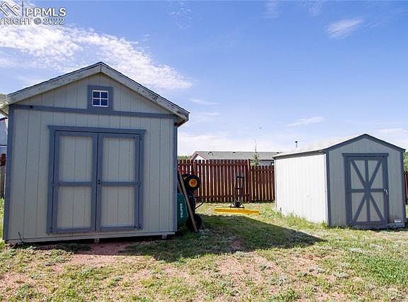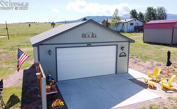 Minutes to Divide - one-level rancher on 4 lots totaling almost an acre! Open floor plan and spacious rooms throughout. Large kitchen with pass-through breakfast bar, ample counters and cabinets plus plenty of storage in the pantry. Dining area has bay window, living room has access to back yard. Master suite has walk-in closet, and adjoining bath with double vanity. This home is light & bright, in good condition and on a level lot with Pikes Peak in the background. Two storage sheds plus plenty of inside storage. New 2-car garage with 576sf plus an additional 2-car carport!