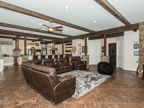 Stunning Ranch Style Residence on 5.15 Acres in the Heart of Legend Hills! This exceptional custom home is a true gem, boasting meticulous landscaping, a spacious driveway, and remarkable equestrian amenities, including horse stalls, a barn, and two fenced arenas. With a 3 Car Garage, 5 Bedrooms, 4 Bathrooms, tall ceilings adorned with exposed beams, an open floor plan, a generously sized kitchen featuring custom cabinetry and granite countertops, a walk-in pantry, an expansive family room, a well-appointed office with built-in cabinets, a versatile bonus room, a spacious laundry room, and a detached 4 Car Garage with a casita. Some interior features exquisite stamped concrete floors, a central vacuum system, and a cozy wood-burning fireplace. Privacy is paramount in the fenced backyard,