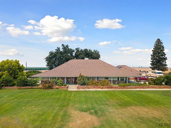 If you currently live in the city but have always wanted to live in the country, this home is for you. Just 25 minutes south of Bakersfield is country living at its finest. You can start every day on the front porch enjoying the amazing view of the mountains. This very private home is just under 3200 S.F. with 4 bedrooms & large office, 3 bathrooms, 2 living areas, large formal dining room. In the family style kitchen you have granite counters, SS gas range & double ovens, breakfast seating area & walk-in pantry. Large laundry room w/ a sink, 2 water softners, plantation shutters, central vac , attic storage, 2 AC units, 2 Evap coolers, solar panels & security system. Not to mention this is a horse property on just over 2 acres with tack room, covered horse corral & open air corral, avocado, orange & lemon trees, room for all your equipment in this 1500 sq ft 6 car garage. The backyard features two enormous oak trees that are amazing & the view from the backyard is open to the City.
