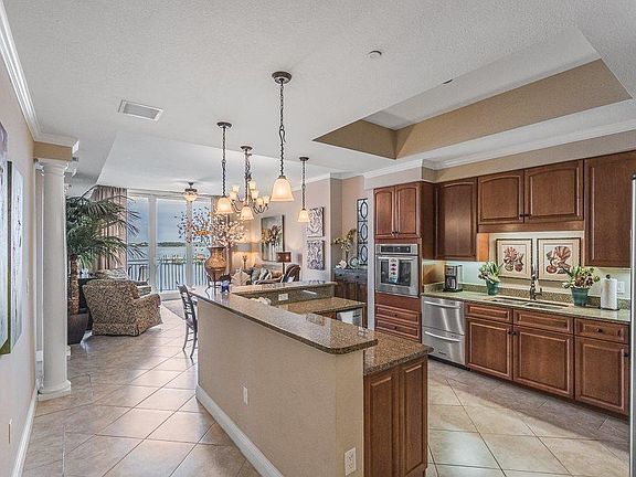 Enjoy stunning waterviews from the balcony of this furnished 3 bedroom, 3 bath condo. La Serena is a luxury residential community with amenities for the whole family, beautifully designed landscape and well-appointed condos. This open floorplan is great for enteraining, the spacious kitchen has a large island which flows into the dining & living area. Fully loaded kitchen featuring stainless Kitchen Aid appliances, a wine cooler, ice maker and plenty of cabinet & counter space. Spacious dining & living area with 10' high ceilings, crown molding and sliding glass doors to the waterfront balcony. The master bedroom features wood floors, balcony access, a jetted whirlpool tub, walk-in shower and granite countertops. Both of the 2 guest bedrooms are spacious and feature an attached bathroom. New HVAC installed in 2019. Ideally located on the 1st floor if you prefer to take the stairs over the elevator. FIRST CLASS AMENITIES at La Serena include 2 swimming pools, cabanas, 2 hot tubs, community boat dock, tennis court, BBQ Grill area, fitness center with a view, sauna, steamroom and kayak rack. Just moments from the sugar sand beaches of the Gulf of Mexico, an Arnold Palmer Designed Golf Course, Marinas and Restaurants. La Serena is a true coastal parasdise, call today to start your adventure. Both a covered parking space and storage unit are included too !