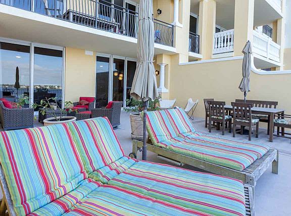 HUGE Waterfront Balcony adds 773 sqft. of lounging and entertaining area to this 3 bedroom, 3 bath condo (must see pictures). Views overlook the Ole River & Intracoastal. This unit has a welcoming foyer, large bedrooms & top-end finishes incl. Kitchen-Aid appliances, granite countertops, master suite w/ wood floors & a jetted tub, crown molding & more. Enjoy indoor & outdoor pools, community boat dock, fitness center w/ team & sauna, tennis, the ultimate coastal getaway. Covered Parking too.