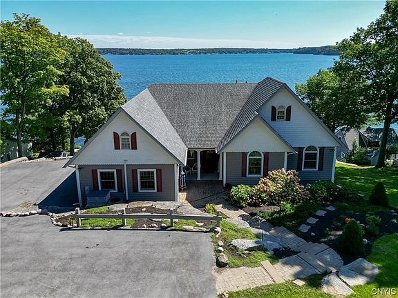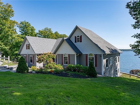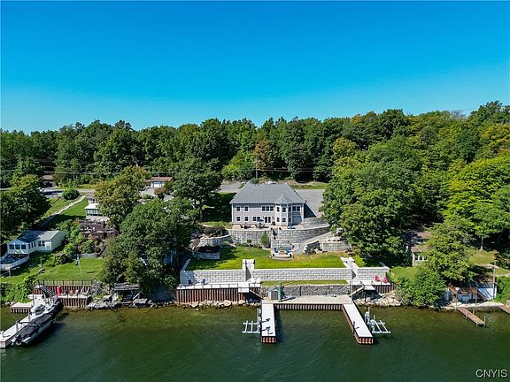 The "WOW" factor is through the roof on this one! On the inside, from the custom hand milled Ash and Cherry cabinets and woodwork, to the granite countertops, swanstone sinks, Bamboo and Italian Tile floors and a completely finished lower level for entertaining. On the outside, the 150' of waterfront with massive retaining walls, a 10' x 60' dock along with (2) 8' x 40' docks that each have there own 8,000# boat lift and jet ski lift!! Did I mention the 1 ton crane as well! The expansive patio's offer awesome views for outdoor dining and entertaining. The 4200+ sq ft home offers a master suite, 2 additional bedrooms, laundry room, office, dining area, gourmet kitchen and a formal living room with spectacular views of the bay on the main level. The lower level offers an additional bedroom and bath along with a large family room/bar for entertaining large gatherings, also with those gorgeous waterfront views! Plenty of room for additional storage in the utility area on the lower level as well. Entire home offers radiant heat on both levels and in the garage. Home is built on 8" block with 4" insulation and foam spray insulation for energy efficiency. Make your appointment today!