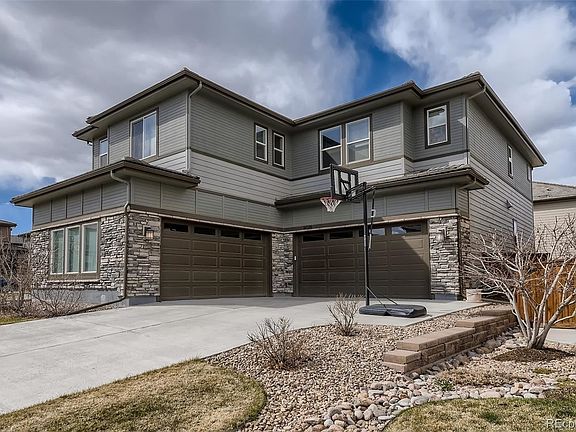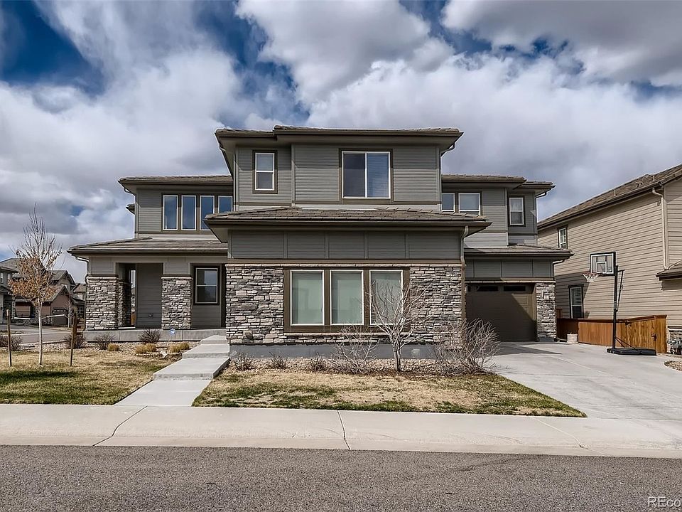 Unique opportunity to own a Beautiful Shea Evergold floorpan Home in the coveted Stepping Stone neighborhood in Parker. This exceptional home is located in Stonewalk Neighborhood within Stepping Stone. The house is set on a larger corner lot on a quiet street. The home features a total of 5 Bedrooms and 6 bathrooms and 4 car garage. An incredible open concept and spacious floor plan, 8 foot tall doors and 10 foot ceilings throughout the house, tons of windows and 2 glass door slides that provide glowing natural light. From the entrance to the great room, you are exposed to the spectacular high ceiling and that along with the massive gorgeous fireplace tile surround wall, takes your breath away. The large kitchen has a massive and special granite aisle, plenty of stacked soft close cabinets and roll-out shelves and a generous size pantry, perfect to entertain your guests! Main floor private guest suite, a spacious bonus room for any project. Great size backyard to enjoy those warmer days and from where you can see a nice greenbelt and one of the two SS Ponds. Two HVACs, concrete Tile roof, EV 240 Outlet conveniently located inside the 2 car garage. This neighborhood is beautiful and well established. Fun dinosaur park, several playgrounds and grass space to enjoy outside activities, community pool, clubhouse w/gas fire pit, and exceptional walking and biking trails. This neighborhood hosts actively engaged and well attended seasonal events, such as the annual August block party, fourth of July and Halloween celebrations, food truck Fridays, Saturday pool parties, and an end of season Autumn doggie splash pool party. You will be in a lively and active community, walking distance to the Reuter-Hess incline, and easy access to I-25, Lone Tree, and downtown Parker. Only 23 miles from Downtown Denver!