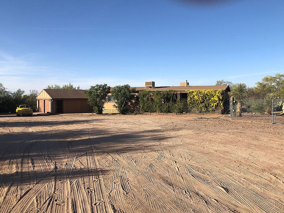 Spacious and open 2 bedroom, 2 bath, 1440 sq ft home with lots of natural light. Double sided fireplace. Updated kitchen with tons of cabinets and stainless appliances. Large Master Suite. Laundry room with cabinets has dog door. Separate 2 car garage has an insulated and finished room, has two entrances and garage door opener. Large inground pool with one end deep enough to dive. Fun in the sun! There’s also a full RV hookup and pad in one of the fenced yard. Walk the bridge over the wash to an 1100 sq ft building that’s ready for whatever you have in mind....a home based business, wood/metal shop, a place for your critters, party palace, game room, artist’s studio, rental, etc. Building also has a shaded concrete patio, electric and water. All of this is nestled on quiet and peaceful 1.97 acres where the sunrises and sunsets are absolutely incredible. A Speedway convenience store is only 5 minutes away, hardware, dollar stores and general store are about 8 minutes and major shopping is within 15-20 minutes. I purchased the house in 11/2021 and began updating/remodeling albeit rather slowly. Then a new neighbor moved in next to me and eventually we fell in love. So now we are living together in his place and finishing mine and selling it. My house and property are lovely and I’ll miss it. Pictures will be forthcoming as soon as we finish the bathrooms, painting and cleaning. If you’re interested in knowing more, being contacted when the pictures are posted or seeing the place just message me. The wash on the property has been hand dug out to return its depth to a safe level to keep the monsoon waters from causing any flooding. Also, dirt berms were created by previous owners to avoid flooding from the road in monsoons. Btw, Zestimate is incorrect as it doesn’t take into account second building on property nor the amount of expensive chainlink fencing and gates. Nor does it allow for an inground pool vs vinyl above ground pool.