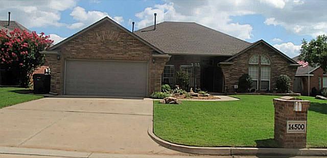 Private gated community with lake, pool & only 34 homes. Easy access to turn pike. Immaculate 3 bed with study, open living with breakfast bar, eat in kitchen, & DR. Heat & Air replaced 2011. Lots of natural light. 2 way fireplace btw LR & study. Jetted tub in master bath. Landscaped yard with added patio space, water features, sprinkler system & arbor. Extra insulation for low bills. Move in ready. All on ONE level. EDMOND SCHOOLS